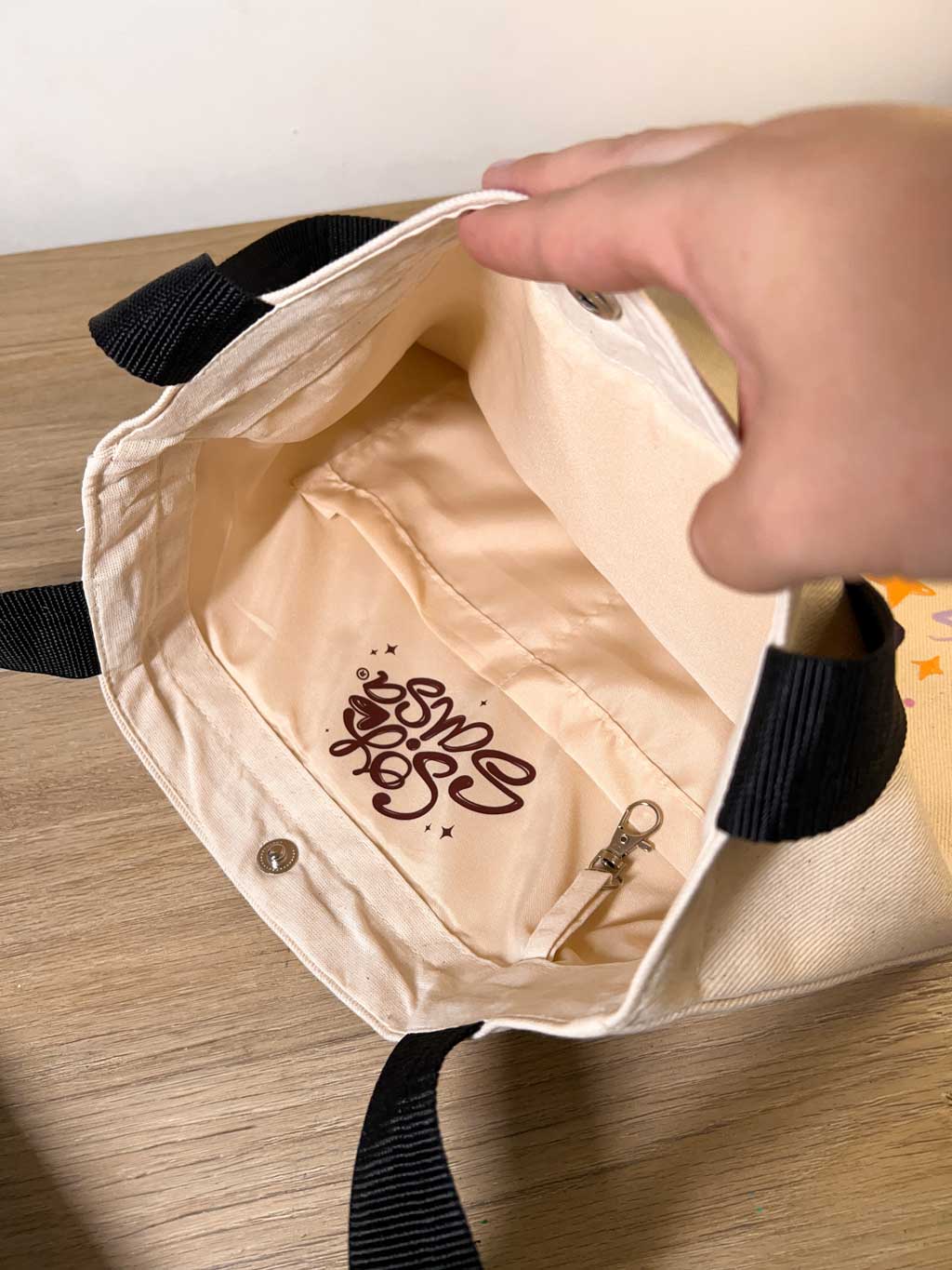 Cuenta con broche de seguridad para mantener tus pertenencias protegidas, un gancho interno ideal para colgar llaves o audífonos y dos bolsillos prácticos para organizar objetos esenciales como tu celular, billetera o gloss. Su interior amplio permite llevar desde agendas, iPad o laptop hasta todo lo que necesitas durante el día.